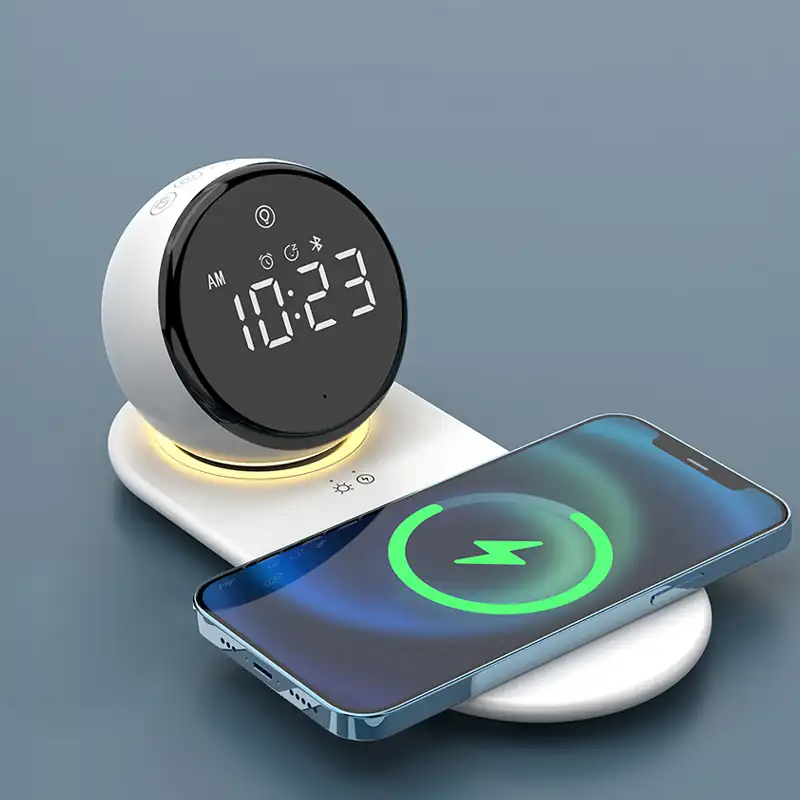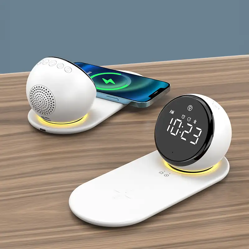 Looking for one of the best white noise machines to transform your sleep routine? This sleek 4-in-1 bedside companion combines a Bluetooth speaker with soothing white noise, a crystal-clear LED alarm clock, a warm ambient night light, and a Qi wireless charging pad — all in one minimalist device. Whether you’re easing a baby to sleep or unwinding after a long day, the soft, calming sounds and gentle golden glow create the perfect sleep environment. Simply place your phone on the pad, set your alarm, and let the white noise do the rest. Compact, whisper-quiet, and beautifully designed — this is the last bedside gadget you’ll ever need.